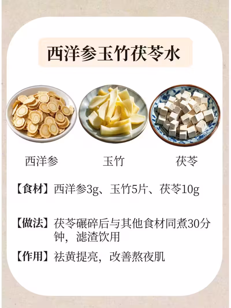 🌼黃皮妹自救指南!玉竹潤膚+茯苓美白,搭配西洋參提氣色,素顏敢懟臉拍