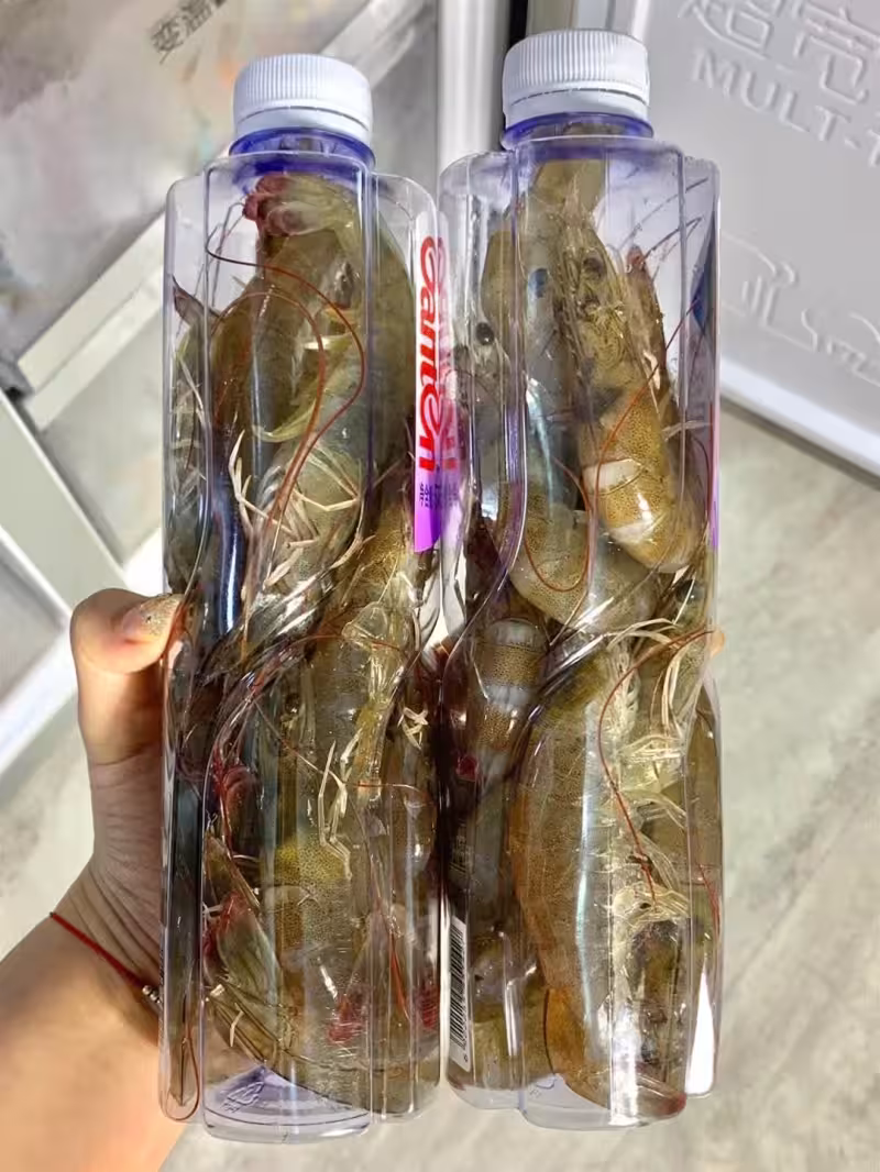 為什麼選小瓶?因為這樣便於分裝,可以保證每次解凍的蝦量是家庭食用的適當份額。這樣您就不必一次解凍大量蝦而導致浪費,瓶子小的能裝半斤左右,相當於一家三口吃的完美分量。