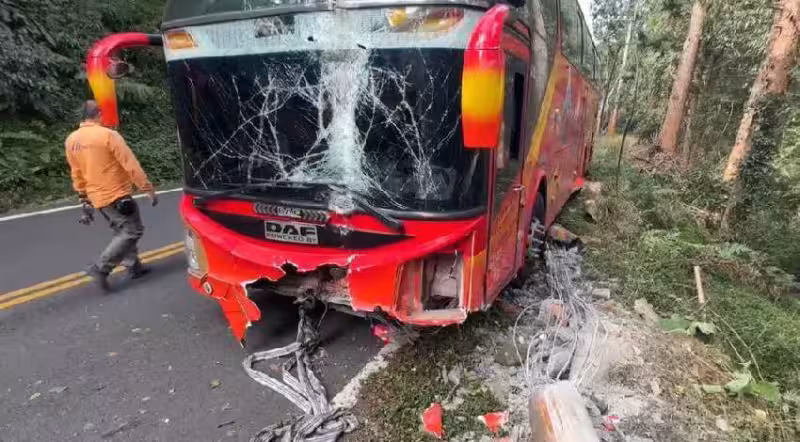 南投遊覽車往杉林溪「自撞車頭全毀」卡懸崖「駕駛竟離奇失蹤」警消到場破門後全場傻眼!