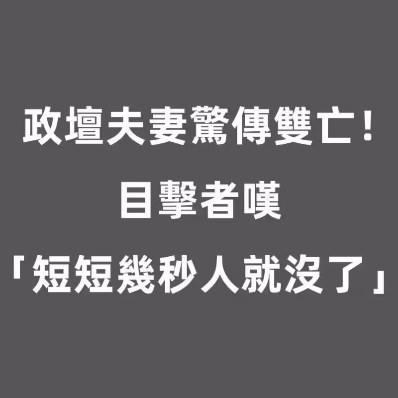 政壇夫妻驚傳雙亡!!! 目擊者嘆 「短短几秒人就沒了」