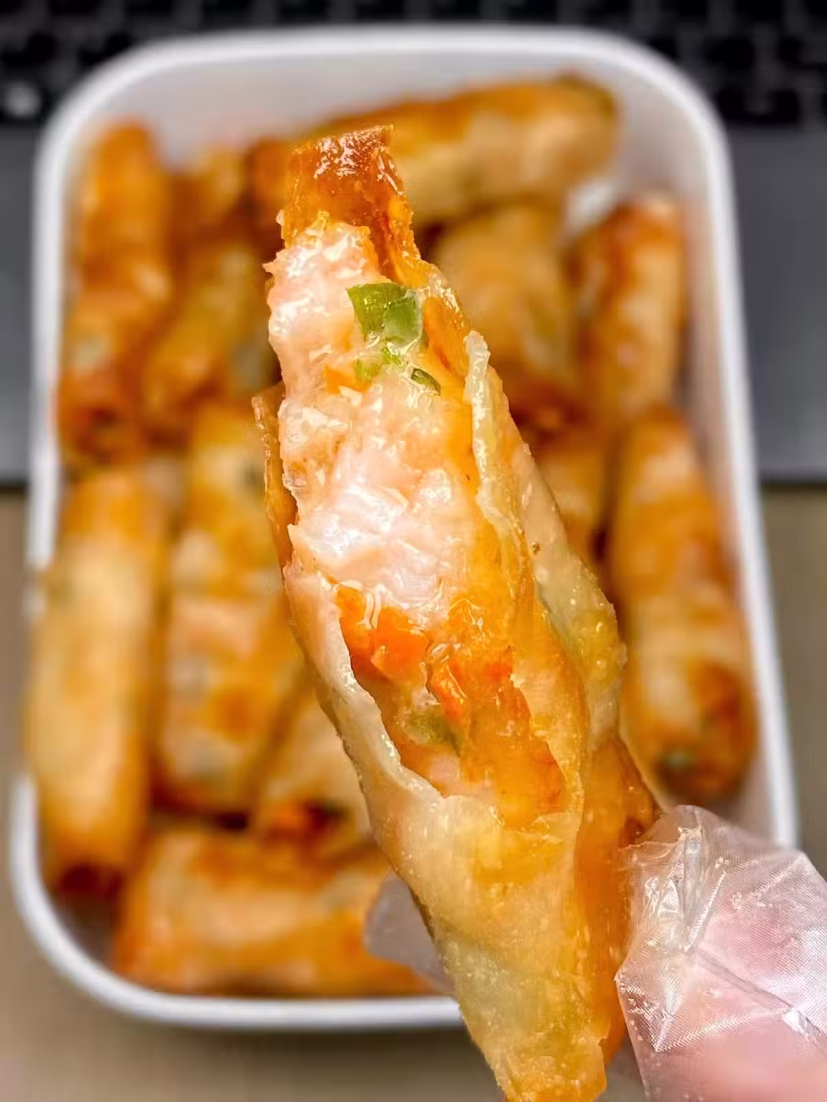 餛燉皮做的蝦滑卷,嘎嘎香 巨好吃