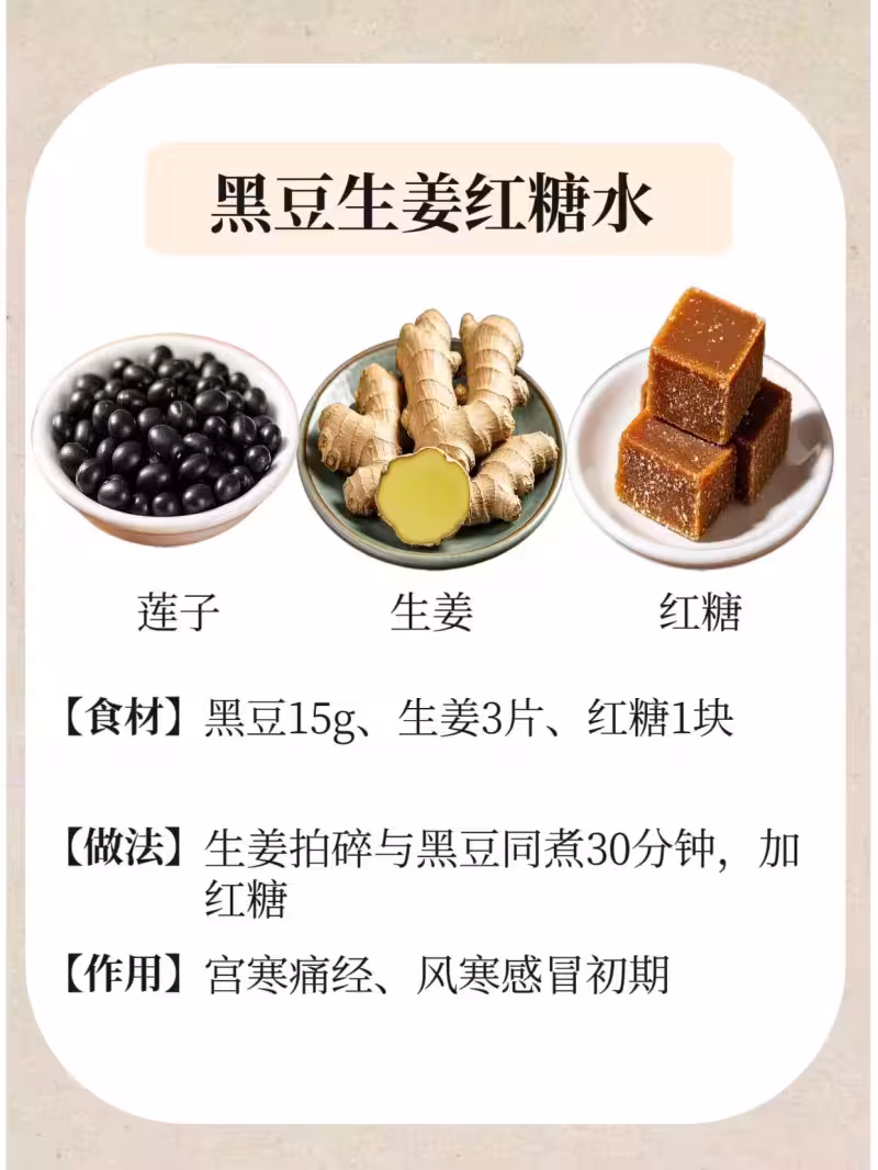 2️⃣ 🍯暖宮驅寒水:黑豆+生薑+紅糖