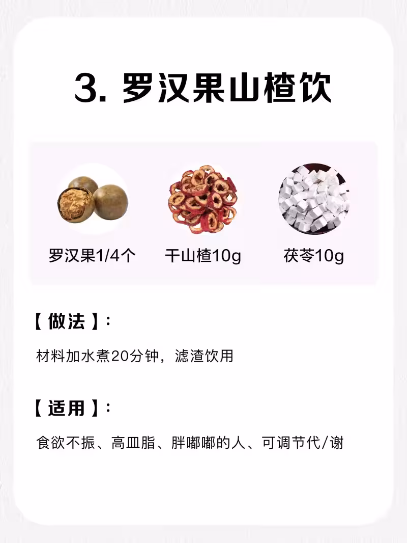 3⃣️羅漢果山楂飲:羅漢果+干山楂+茯苓