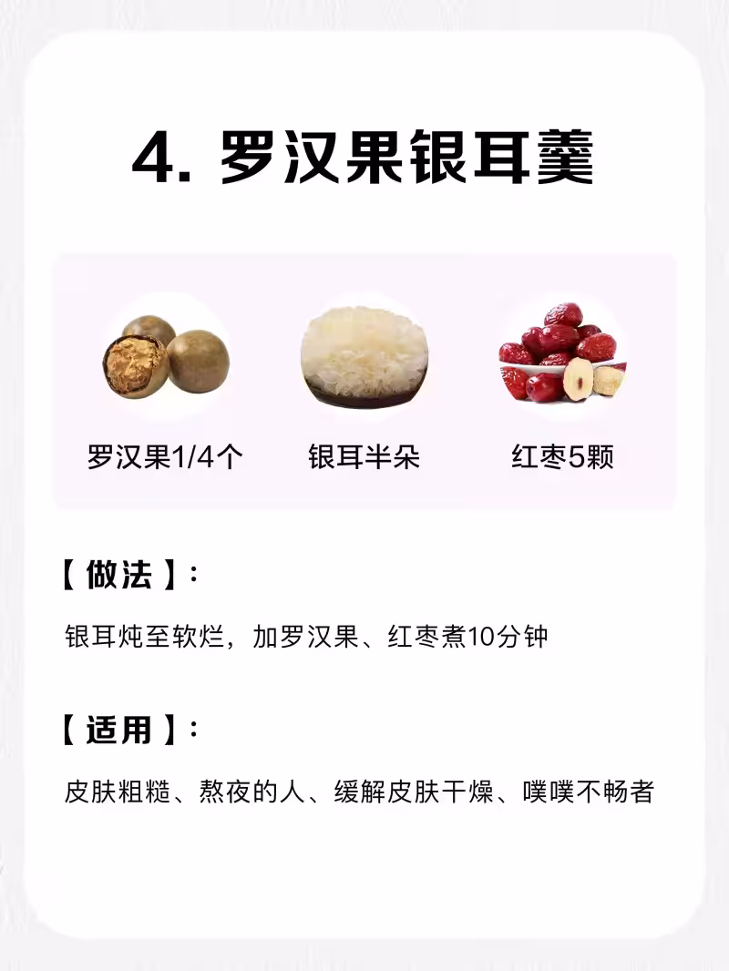 4⃣️羅漢果銀耳羹:羅漢果+銀耳+紅棗