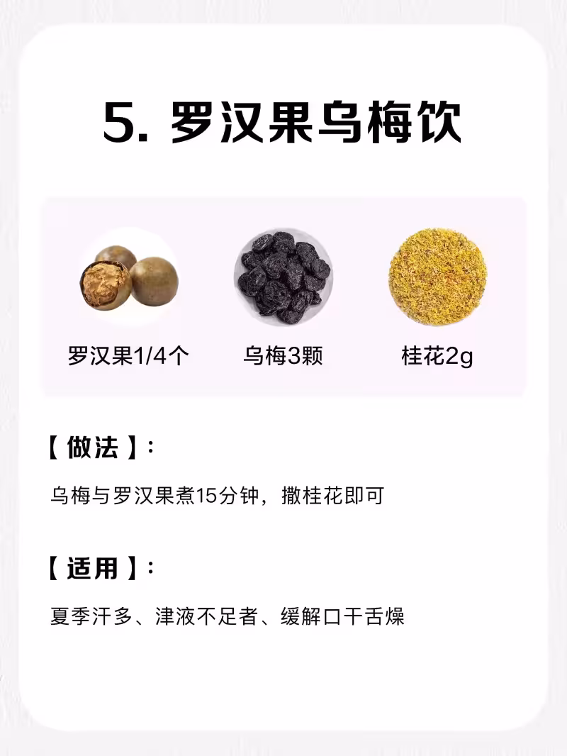 5⃣️羅漢果烏梅飲:羅漢果+烏梅+桂花