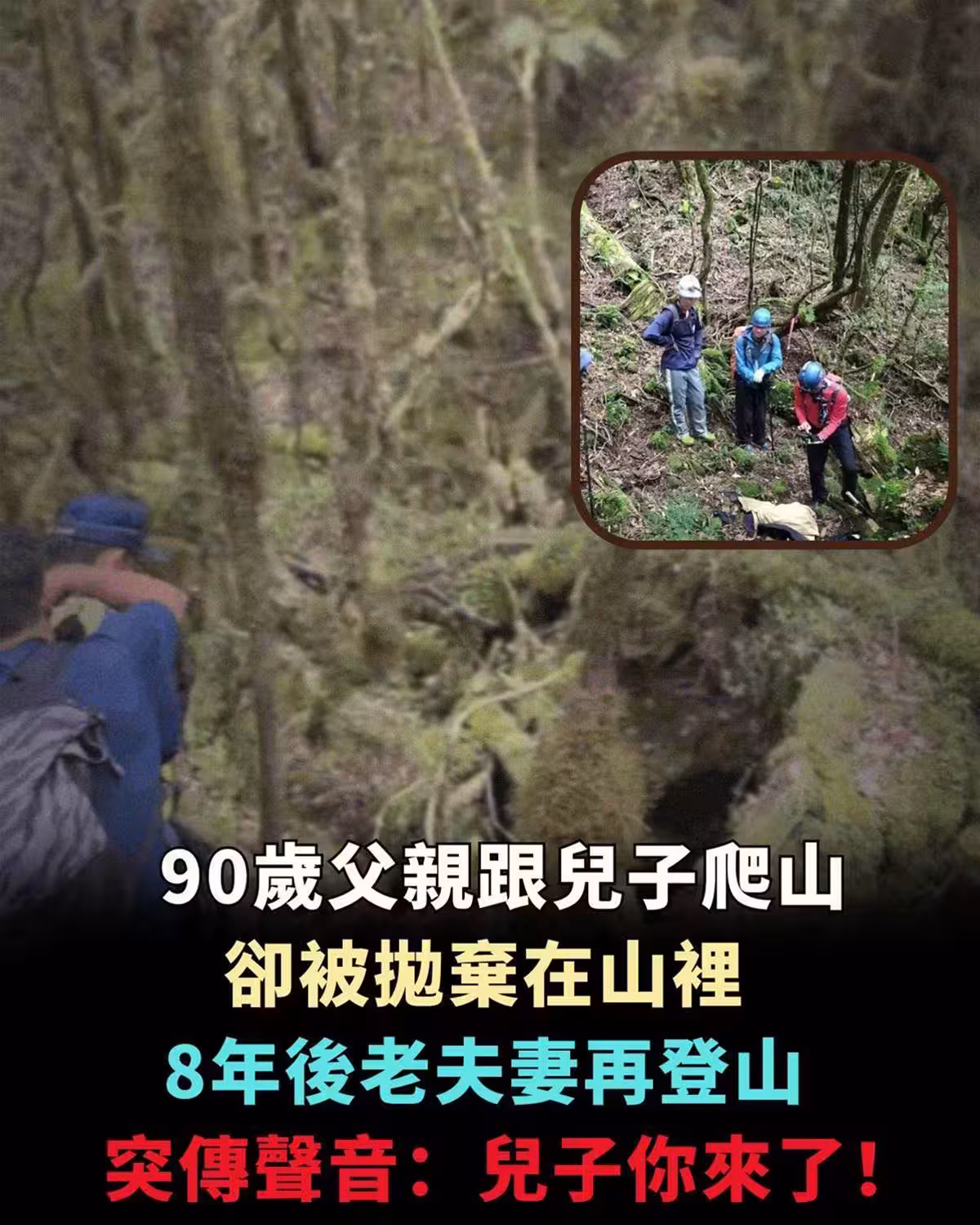 90歲父親跟著兒子爬山, 卻被丟在山裡, 8年後老夫妻再登山時, 山里突然傳來父親的聲音兩人嚇呆!