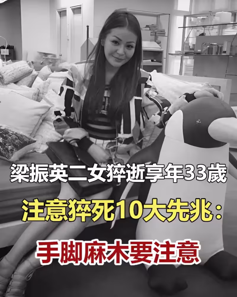梁振英二女猝逝享年33歲,注意「猝死10大先兆」,手腳發麻要注意!