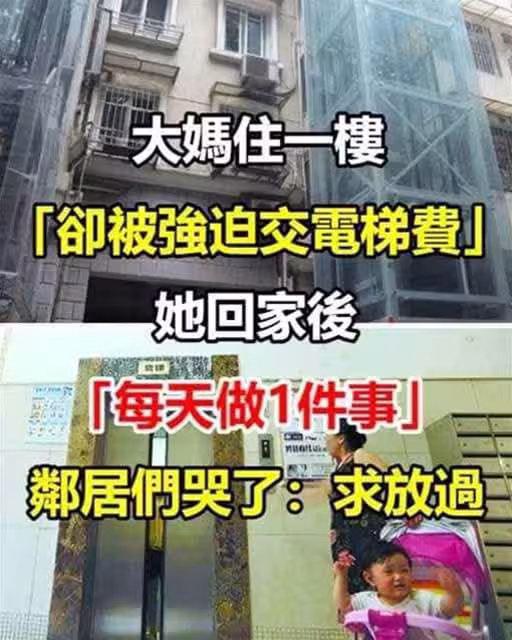 大媽住一樓卻「被強迫交電梯費 」 回家後「每天做1件事」鄰居們哭了:求放過