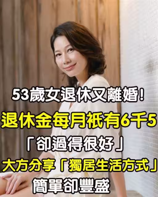 53歲婦女退休又離婚!!退休金每月只有6千5「卻過得很好」大方分享「獨居生活方式」:簡單卻豐盛