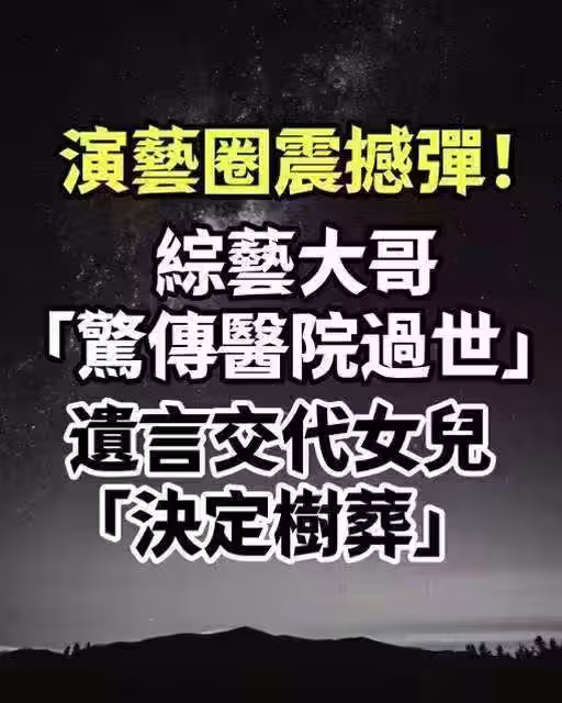 演藝圈震撼彈!綜藝大哥「驚傳醫院過世」 遺言交代女兒「決定樹葬」 演藝圈震撼彈!