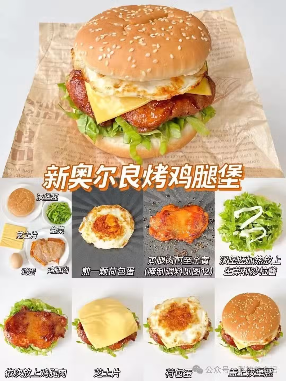 1️⃣ 紐奧良烤雞腿堡 —— 烤得滋滋冒油的雞腿肉,配上鬆軟麵包,每一口都是幸福的滋味!