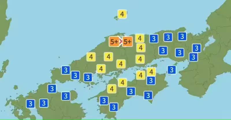日本今(6)日當地時間上午10時18分許,島根縣東部發生規模6.2的地震,深度只有10公里,屬於極淺層地震,最大震度為鳥取縣5強,四國、關西、九州也都有震度3以上強度。目前無海嘯警報。