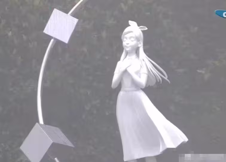 雕像現出全貌——一個穿長裙的女子,頭上繫著髮帶,雙手交叉在胸前。