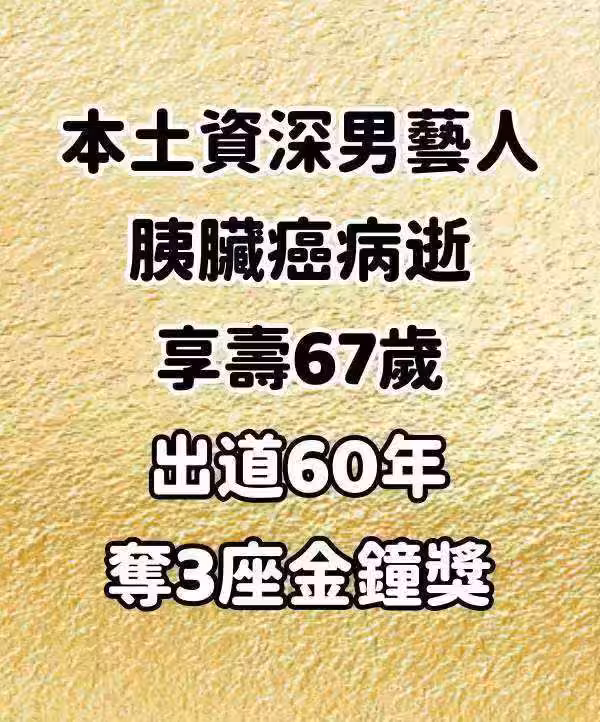 本土資深男藝人,胰臟癌病逝享壽67歲 出道60年奪3座金鐘獎…