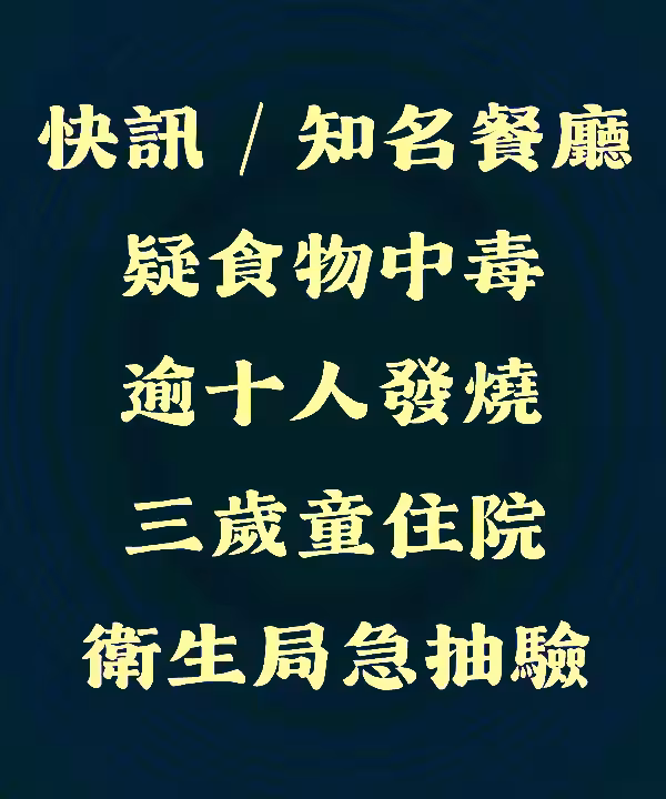 快訊/知名餐廳疑食物中毒「逾十人發燒、三歲童住院」 衛生局急抽驗