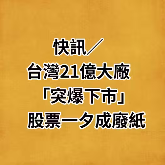快訊 / 台灣21億大廠「突爆下市」股票一夕成廢紙