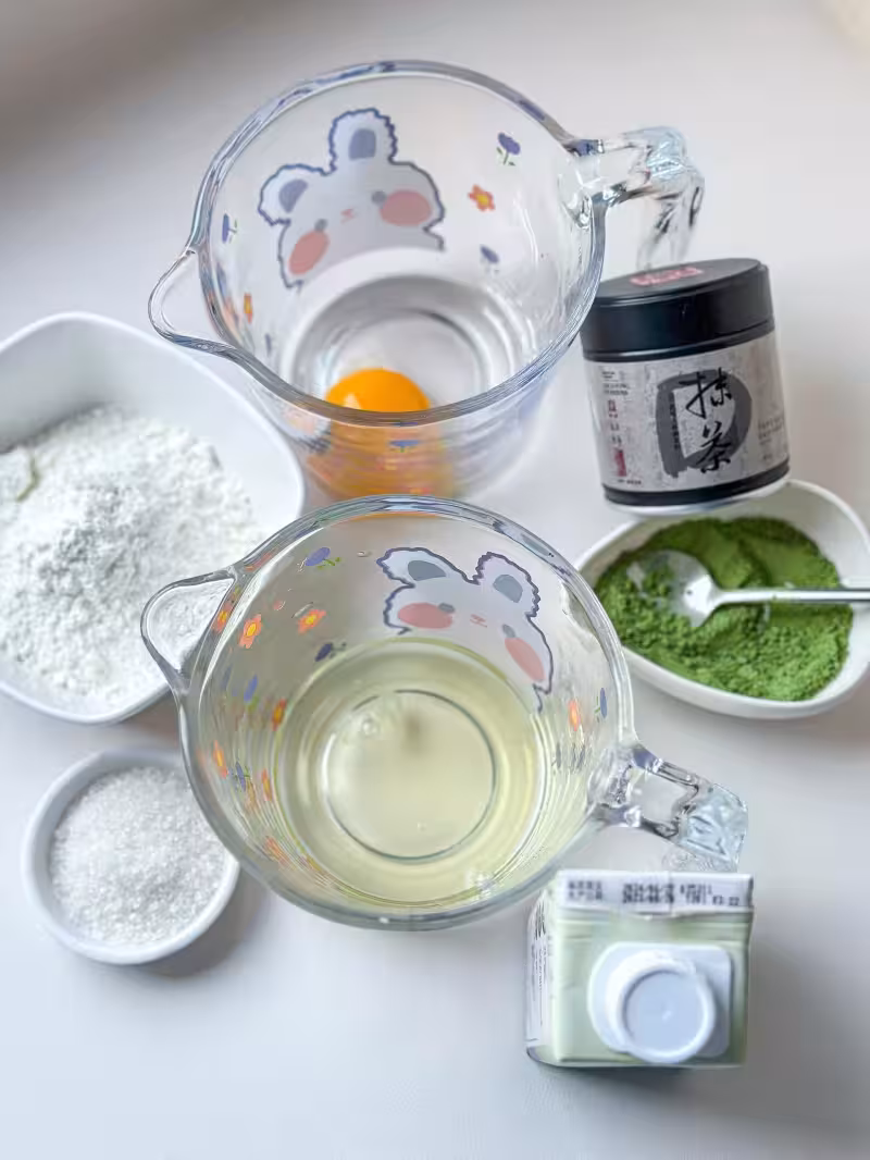 🔅食材:雞蛋1個、低筋粉50g、抹茶粉6g、白糖15g、牛奶60g