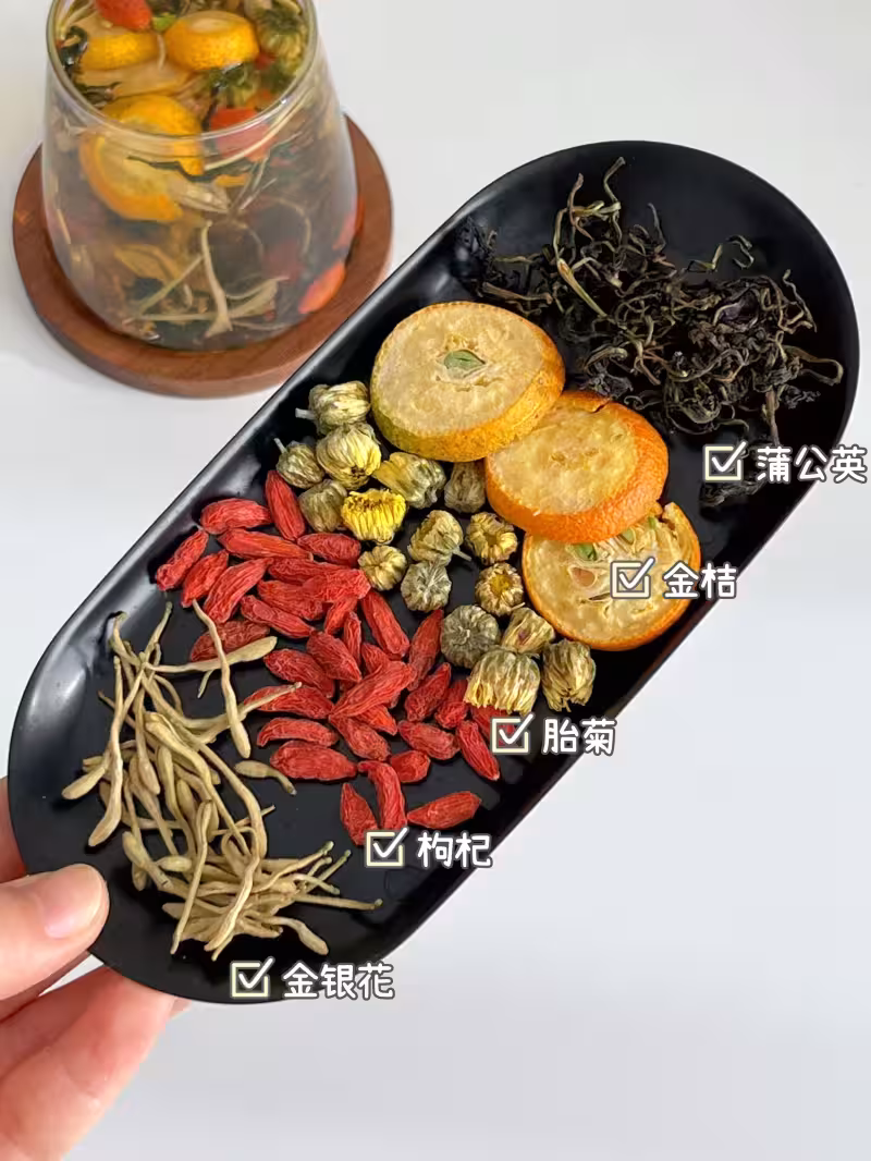 食材:蒲公英,金桔,胎菊,枸杞,金銀花