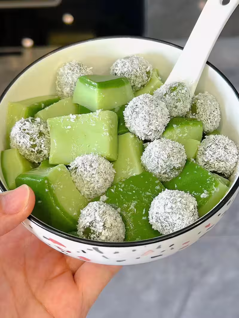抹茶大奶凍+ 椰蓉小丸子