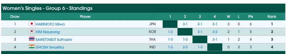 金娜英所在的小組沒有國乒選手,日乒一姐張本美和在這個組,最終金娜英是2勝1負小組第二的身份晉級16強,張本美和是三連勝小組第一。