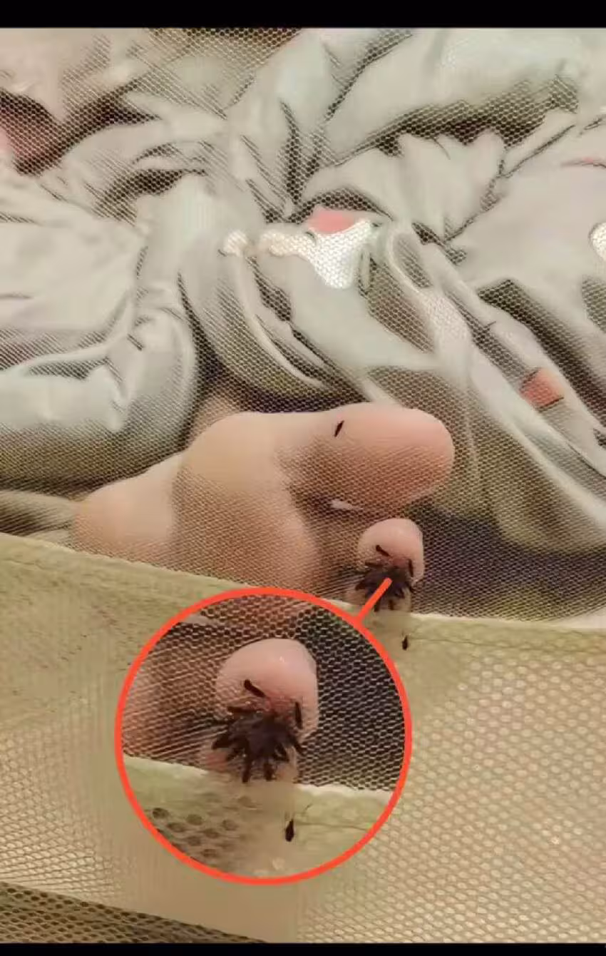 朋友家小孩熟睡, 細看驚見密麻小蟲「隔蚊帳狂叮」 小孩腳, 轉身急告訴朋友, 她卻回:習以為常了