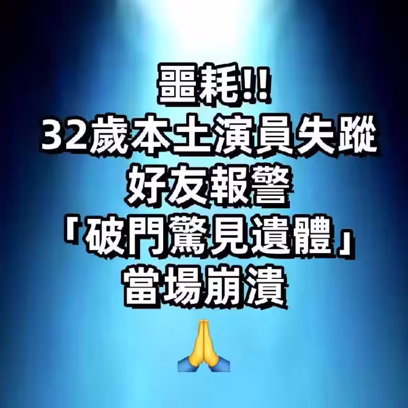 32歲本土演員失蹤!好友報警「破門驚見遺體」當場崩潰 # 告別式時間曝光 !
