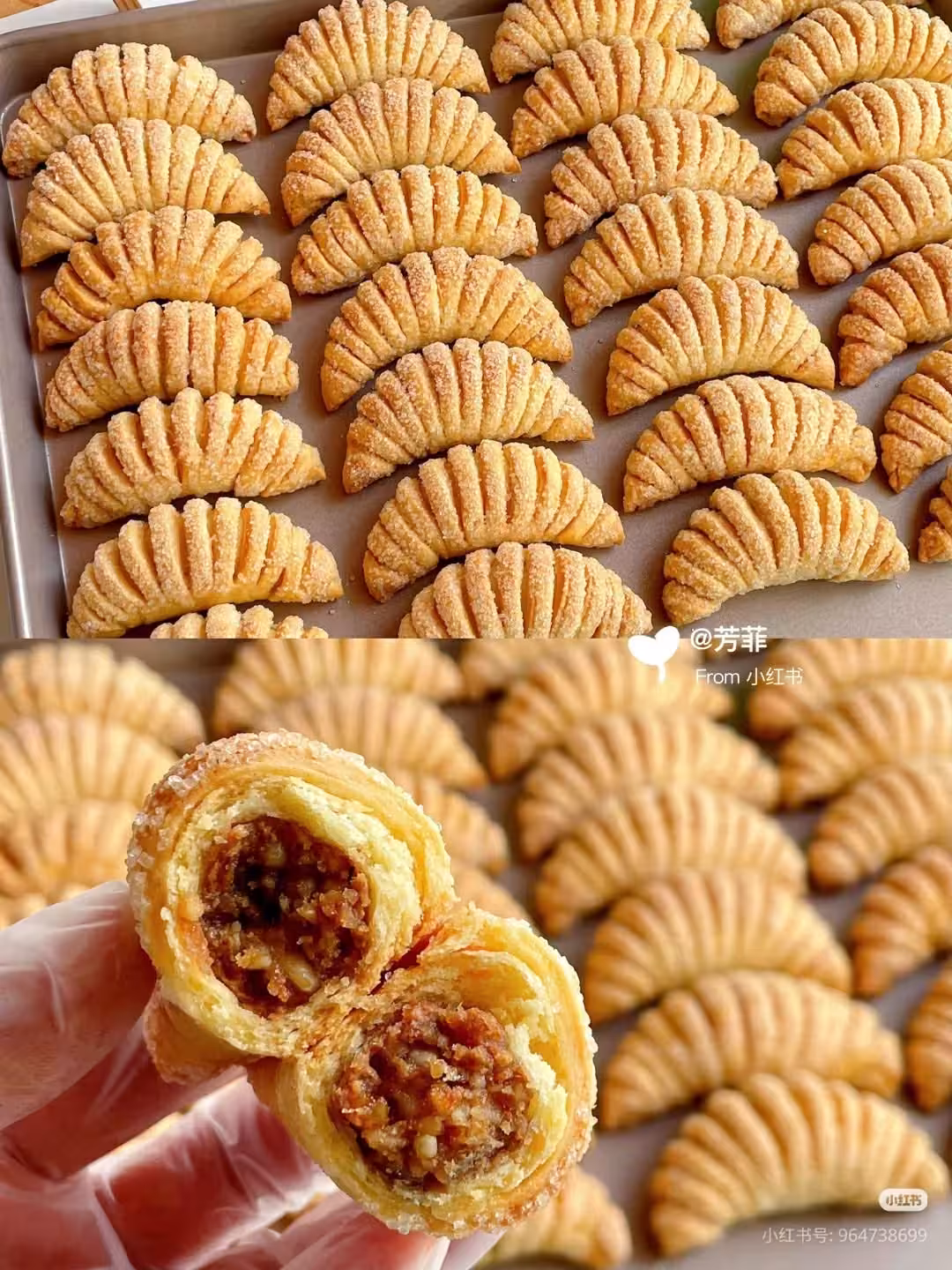適合新年做的小點心,濃郁羊角核桃酥,也叫月亮餅乾.酥脆掉渣巨好吃!👉🏻不甜不膩老少皆宜,做給家人吃或待客都不錯.👯做法簡單一看就會,喜歡的快試試