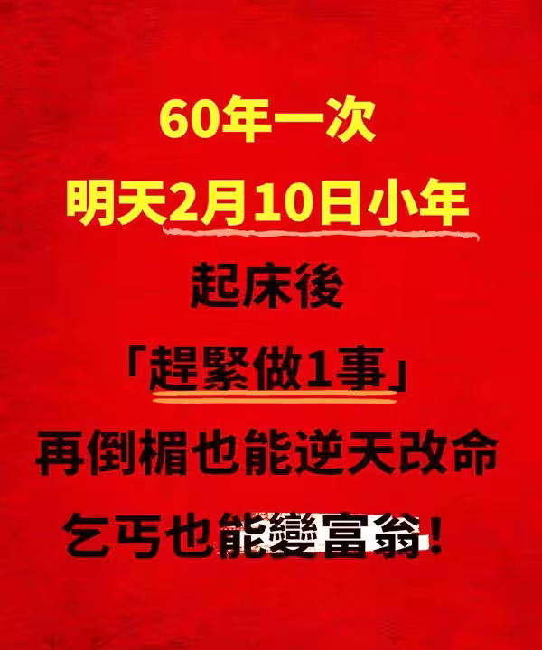 60年一次,就在明天!2月10日「小年」起床後「趕緊做一事」再倒楣也能逆天改命,乞丐也能變富翁