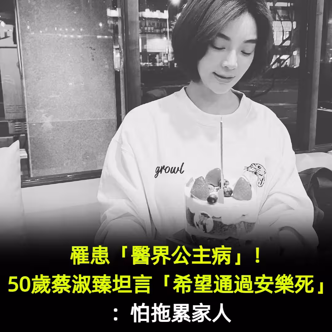認罹「醫界公主病」消失1年!知名女星苦盼「台灣通過安樂死」病況曝光 「坦承怕拖累家人」喊話老後堅持不賴活