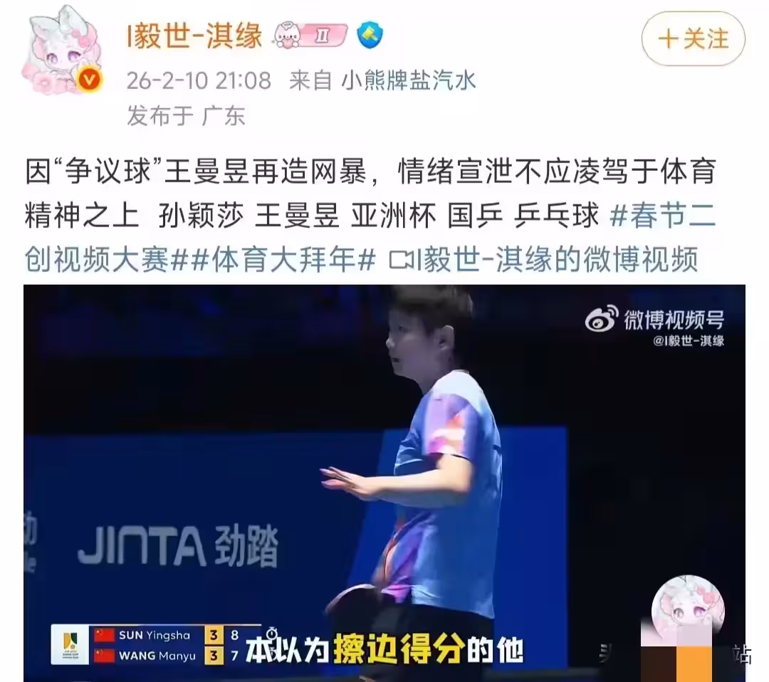 這次事件衝上熱搜後,越來越多清醒的球迷開始發聲:「這麼明顯的擦側邊不知道有什麼好爭議的」「尊重裁判判決是運動員必備的職業準則,王曼昱做得特別好」。