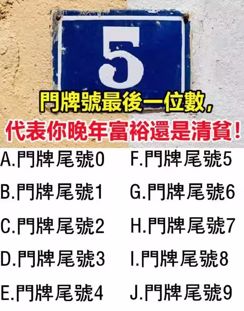 門牌號最後一位數, 代表你晚年的生活富裕還是清貧