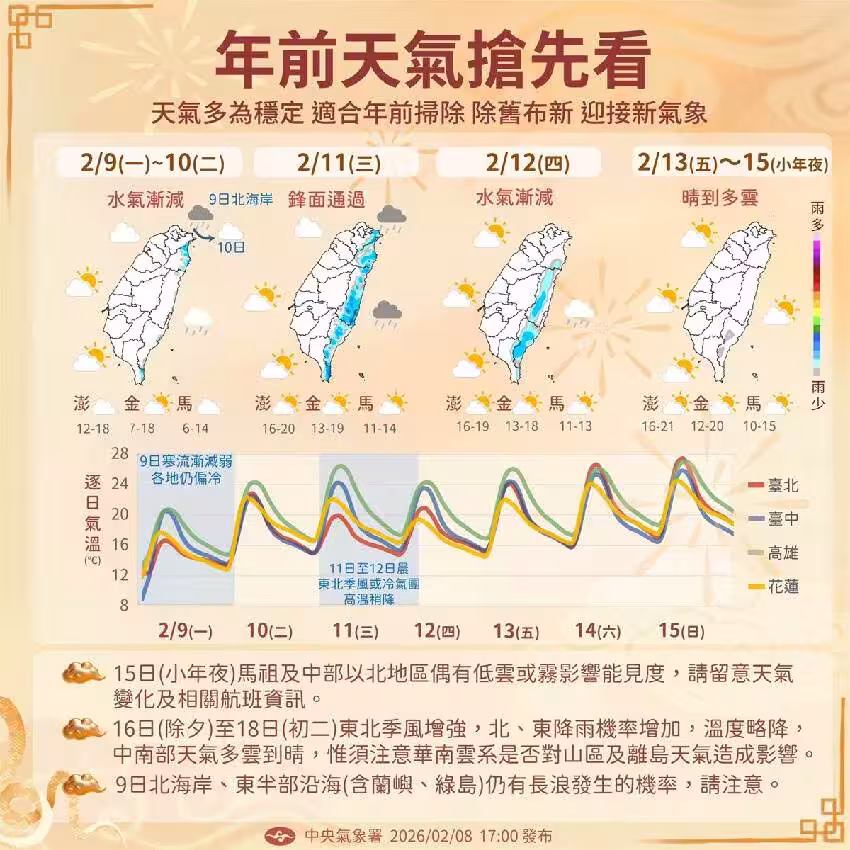 快訊/ 要放9天了!!! 過年連假「雨下最猛」時間曝光