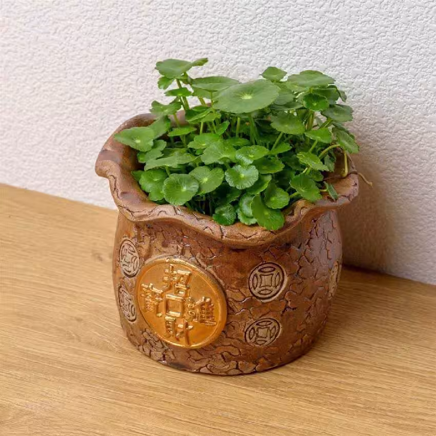 銅錢草養在家中,不只看起來綠意盎然,還預示著財源廣進,而且擺在冰箱上可以吸收冰箱的輻射,起到維護家庭成員的身體健康和磁場平衡。