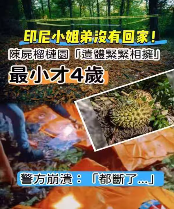 小姐弟沒有回家,陳屍榴槤園「遺體緊緊相擁」 最小才4歲警方崩潰:「都斷了...」!!