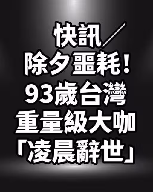 快訊/除夕噩耗!93歲台灣重量級大咖「凌晨辭世」