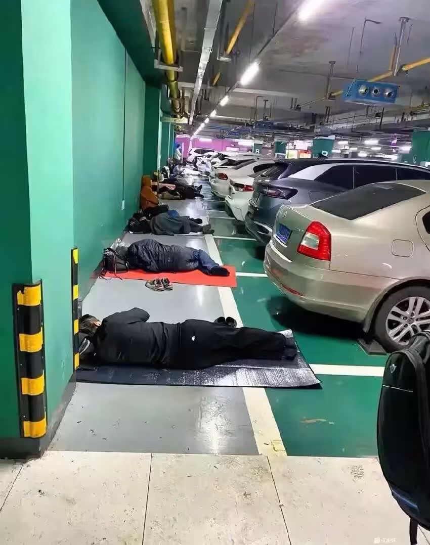 然而,近日一則圖片引起了眾多網友的關注——車庫裡出現了一大排看似「躺屍」的人,衣衫整潔,完全不像是街頭的流浪者。