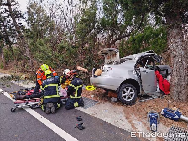 消防單位於當日下午4時17分接獲報案,指稱在縣道203線港子村往赤崁村路段,有自小客車疑似撞上路樹,車內2名乘客受困無法脫身。