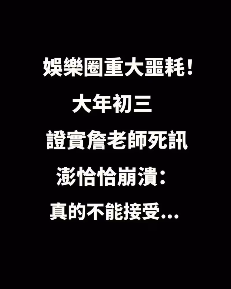 娛樂圈重大噩耗!大年初三證實詹老師死訊,澎恰恰崩潰:真的不能接受...