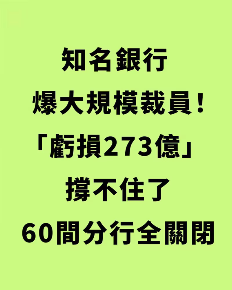 知名銀行爆大規模裁員!「虧損273億」撐不住了,60間分行全關閉