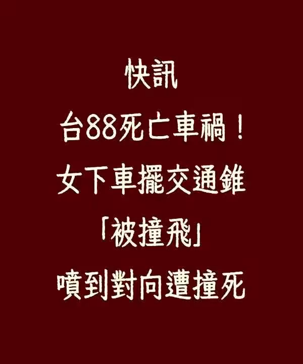快訊/台中88死亡車禍!女下車擺交通錐「被撞飛」 噴到對向遭撞死