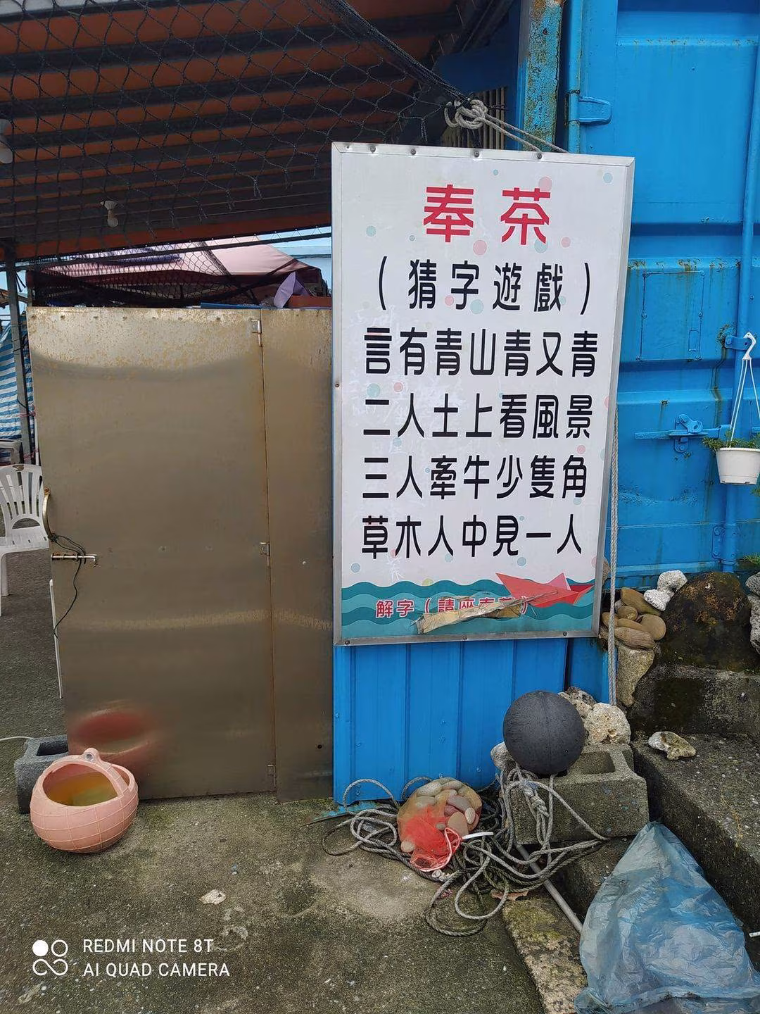 他在路邊看到「四言絕句字謎」拍下詢問解答 神人解出「超簡單謎底」:上面有大提示