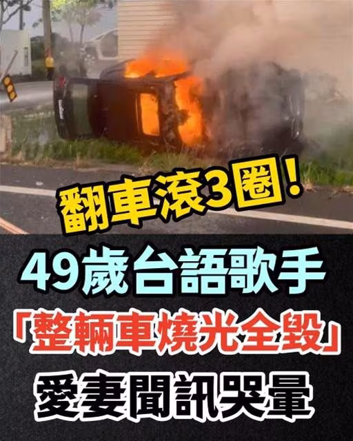 翻車滾3圈!!! 49歲台語歌手「整輛車燒光全毀」愛妻聞訊哭暈
