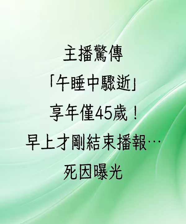 主播驚傳「午睡中驟逝」享年僅45歲!早上才剛結束播報…死因曝光