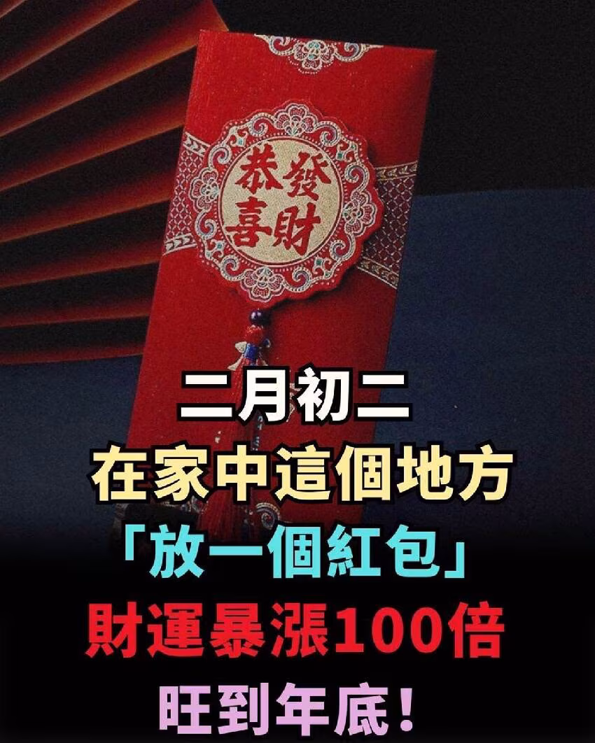風水師偷偷透露:二月初二在家中這個地方「放一個紅包」財運暴漲100倍,從年頭旺到年尾!