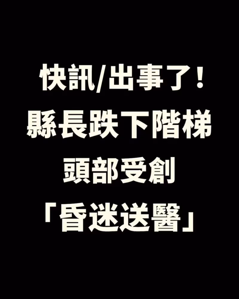 快訊/出事了!!! 縣長跌下階梯,頭部受創昏迷送醫