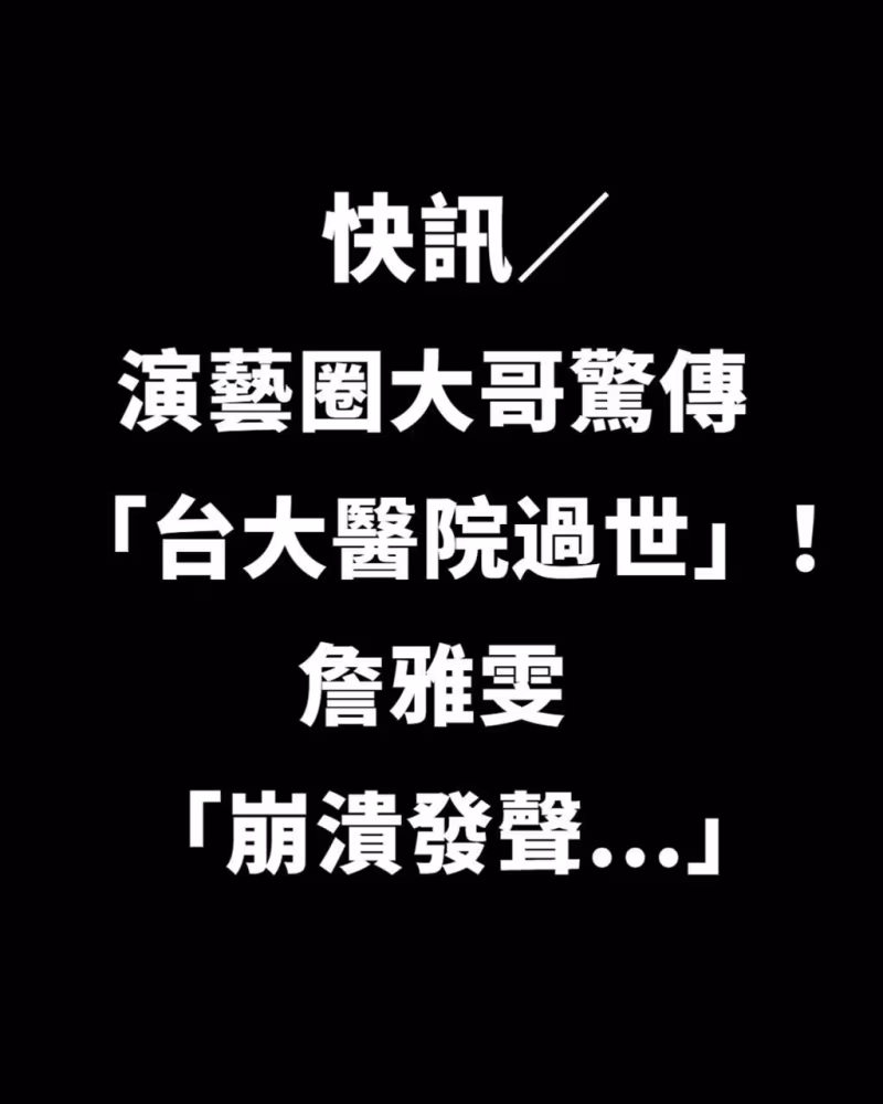 快訊/演藝圈大哥驚傳「台大醫院過世」!!詹雅雯「崩潰發聲」