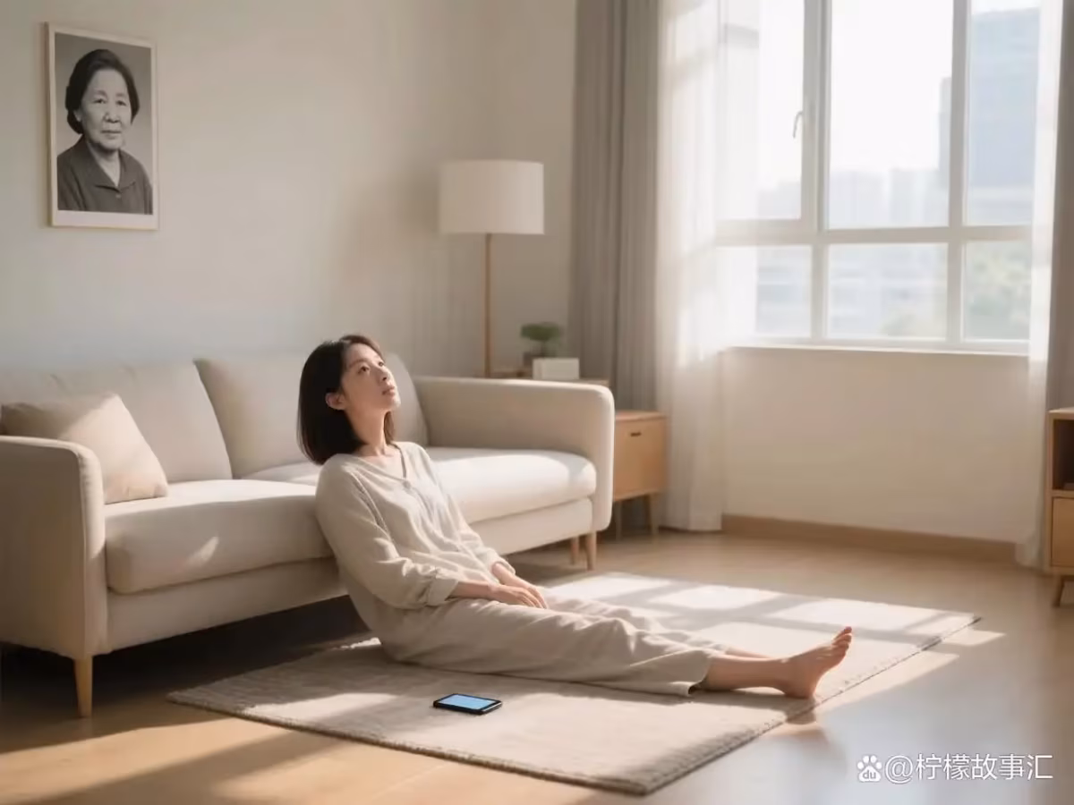 回到家,我癱坐在客廳的地毯上,抬頭看著牆上母親的照片。