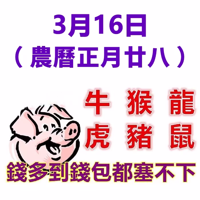 3月16日(農曆正月廿八)生肖運勢_牛、猴、龍大吉