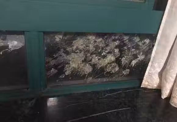 被烏鶇鳥屎攻擊的玻璃窗(來源:Vangie)
