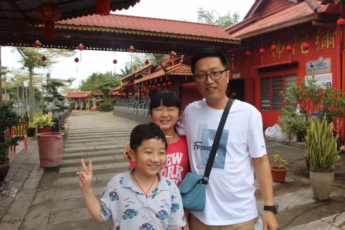 住在勞勿宏願花園的葉世遠(43歲、老師)與太太羅燕珊(41歲、老師)今日專程到觀音堂攝太歲和拜白虎。